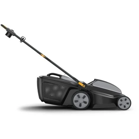 Ce modèle dispose également d’un réglage simple de la hauteur de coupe à levier unique avec jusqu’à 6 positions de coupe possibles, de 25 à 65 mm. Fourni avec un grand bac de ramassage en plastique de 35 litres.