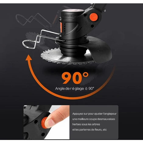 La protection de sécurité de grande largeur protège l’opérateur des débris volants. Tandis que la tête de trimmer ajustable de 90 °.