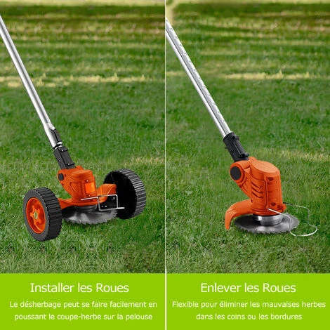 équipé de 2 batteries lithiums rechargeables de 20V max, charge rapide. Avec 2 roues pour une meilleure utilisation. Tige télescopique réglable 30cm, télescopique libre pour améliorer l’efficacité du travail plus efficacement.