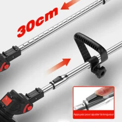 équipé de 2 batteries lithiums rechargeables de 20V max, charge rapide. Avec 2 roues pour une meilleure utilisation. Tige télescopique réglable 30cm, télescopique libre pour améliorer l’efficacité du travail plus efficacement.