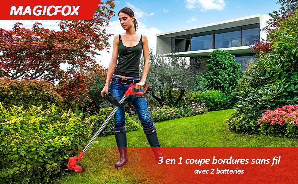 - Le paquet contient: 1 x coupe-bordures sans fil , 2 x batterie au lithium 36V, 1 x chargeur, 5 x lames en plastique, 2 x lames métalliques, 2 x lame scie circulaire