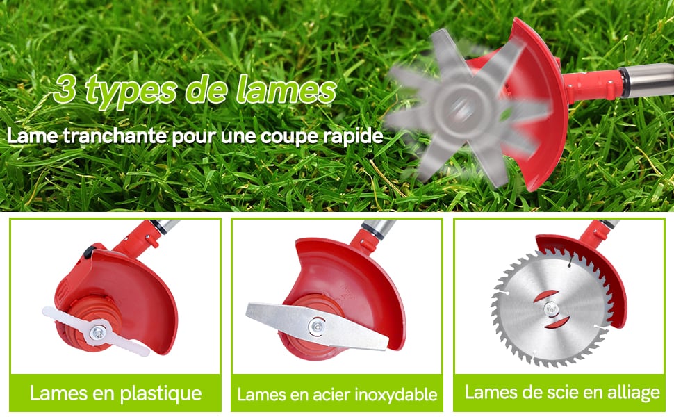 - Les lames en acier inoxydable conviennent aux mauvaises herbes plus anciennes, aux roseaux, etc.