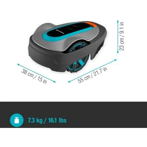 GARDENA SILENO city 250 est une tondeuse robot connectée idéale pour entretenir les petites pelouses jusqu’à 250 m². Elle est compacte (55x38x23 cm, poids 7.3 kg) et ultra-silencieuse (max. 57 dB).