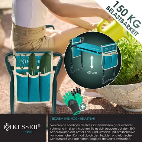 Les travaux de jardinage peuvent parfois se prolonger, votre dos et vos genoux ne devraient en aucun cas en souffrir. Le tabouret de jardin de haute qualité de KESSER apporte un véritable soulagement, car grâce au coussin en mousse EVA élastique et flexible, vous agenouiller ou vous asseoir est très confortable. Avec une capacité de charge maximale de 150 kg, vous bénéficiez d’une protection parfaite contre les sols durs et les surfaces irrégulières. Vos genoux vous en remercieront !