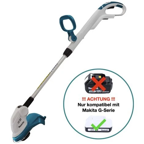 Makita propose ici UR180D, un coupe-herbes sans fil particulièrement maniable. Il est Ă©quipĂ© d’un manche en aluminium très solide qui lui confère une grande lĂ©gèretĂ©. De plus, il est facile Ă rĂ©gler en hauteur pour garantir un grand confort pendant le travail. Sa tĂŞte lĂ©gèrement inclinable est particulièrement adaptĂ©e Ă la coupe des bordures d’herbe et est facilement et rapidement remplaçable. Cette machine fait partie de la sĂ©rie G 18V et repĂ©rable grâce au bord supĂ©rieur blanc du boĂ®tier de la batterie. Elle n’est pas compatible avec la sĂ©rie 18V LXT de Makita.