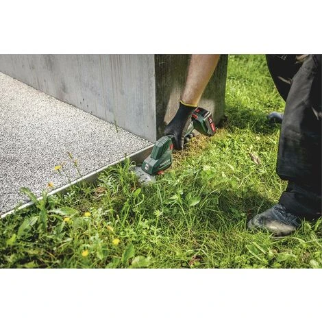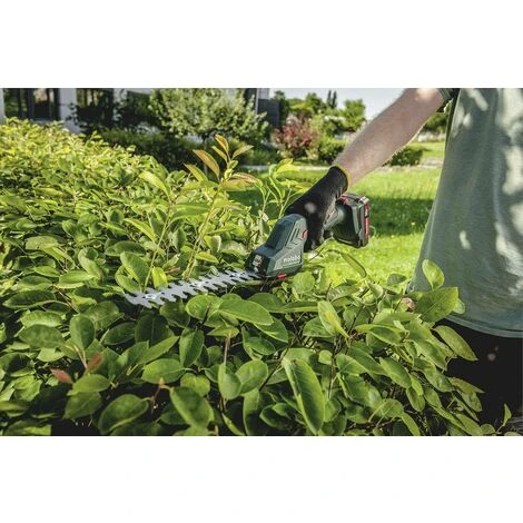 Équipement : 2 en 1 : taille-haies pour des coupes précises sur les buissons et les ciseaux pour des bords de pelouse propres · système Metabo Quick : changement rapide sans outil des deux accessoires de coupe pour un travail flexible · meilleur résultat de coupe grâce aux lames découpées au laser et affûtées · protection élevée de l’utilisateur grâce à l’interrupteur de sécurité et à la butée rapide des couteaux · poids léger avec une douceur maximale pour un travail sans fatigue, un travail fin, un travail sain Zone de préhension caoutchoutée pour un guidage confortable et sûr des ciseaux à gazon · barre télescopique stable pour une coupe précise et efficace des bords de pelouse disponible en tant qu’accessoire.