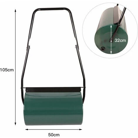 Skecten Rouleau à gazon 50 cm avec Brancard en Acier – Remplissage Eau ou Sable 38 L Vert