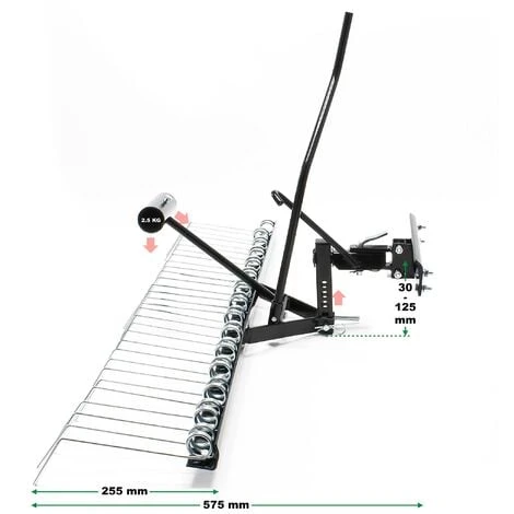 Le dispositif d’attelage vous permettra d’atteler simplement et en toute sécurité, le scarificateur à la tondeuse autoportée, si cette dernière est munie bien évidemment de ce dispositif. Par une croissance de mouse très dense, nous vous recommandons de rajouter du poids supplémentaire au scarificateur (poids NON inclus à la livraison), par conséquent, les ressorts en acier galvanisés vont exercer une pression plus forte sur la pelouse afin d’atteindre un effet de démoussage plus intense