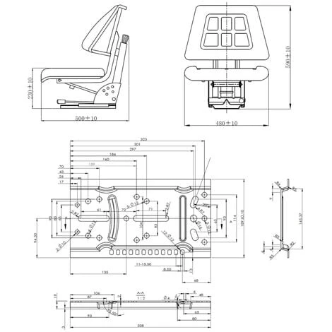 Le siège de tracteur est conçu pour accueillir des poids d’utilisateur de 50 à 130 kg en ajustant le bouton derrière le dossier. Il est doté d’une suspension robuste qui aide à absorber les chocs sur les terrains accidentés, garantissant la conduite la plus fluide possible sur votre tracteur. Ce siège de tracteur est également équipé de rails coulissants qui facilitent le déplacement en avant ou en arrière sur une plage de 150 mm et la base est réglable en 5 angles d’inclinaison différents. L’installation est facile et rapide grâce aux trous de la plaque de base.