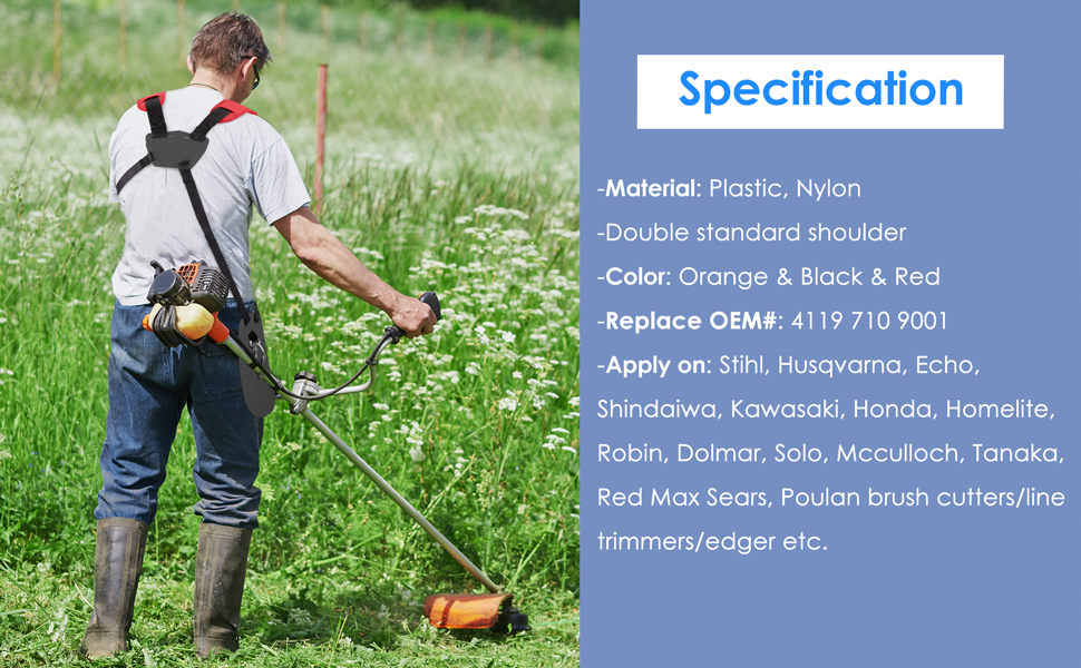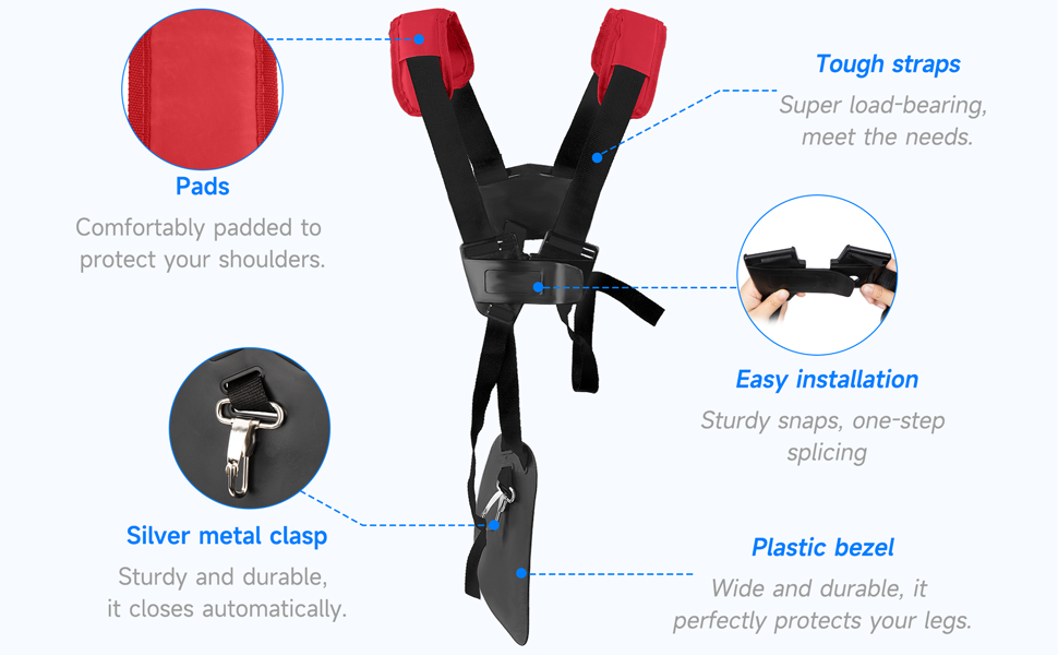 Excellente Fonction: ce harnais de débroussailleuse facilite la coupe des mauvaises herbes. Ce harnais peut réduire la fatigue des épaules et du corps en répartissant le poids sur tout le haut du corps.L’augmentation du confort.